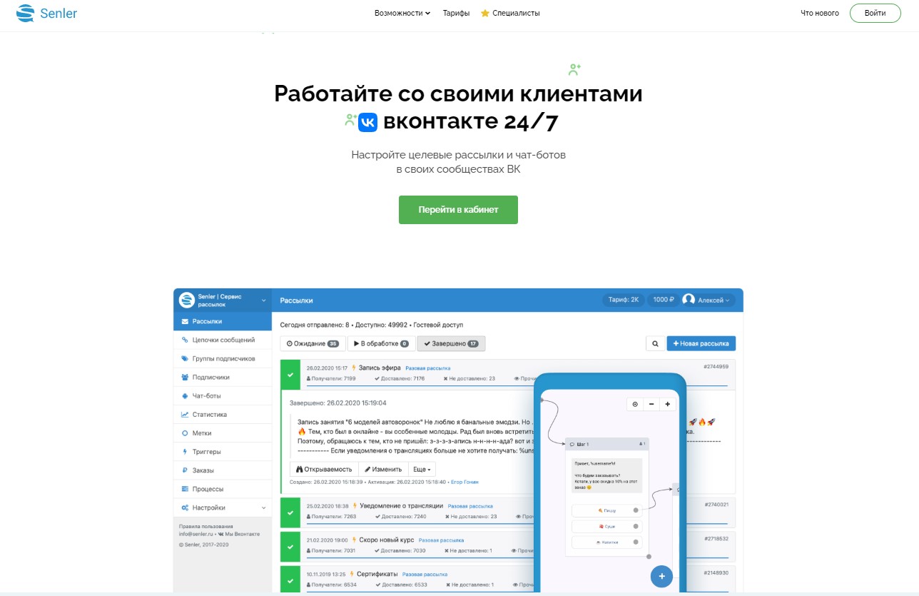 1. Senler – доступное и стабильное решение для отправки сообщений через данную социальную сеть.