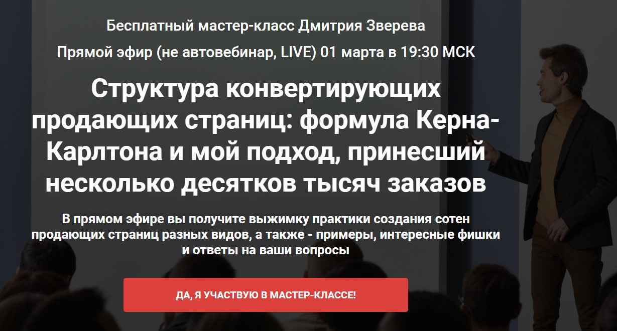 – Я нигде не говорю, что будет прямой эфир. На странице регистрации на автовебинар написано «трансляция бесплатного мастер-класса».