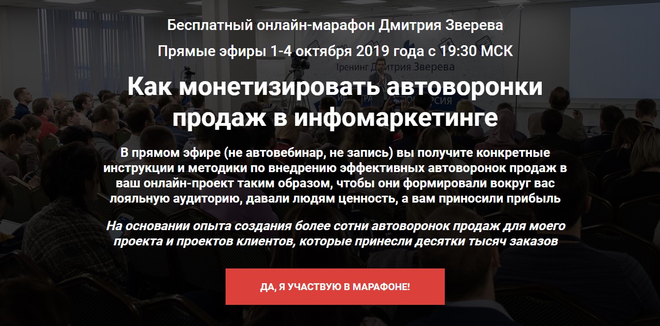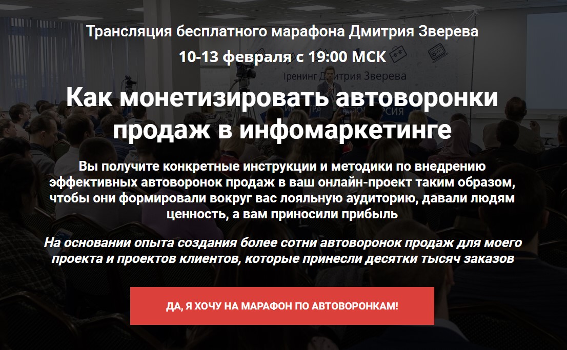 Соответственно – за несколько дней вы погружаете людей в эту тему, показываете тот путь, который им нужно будет пройти к результату, демонстрируете свою экспертность и делаете продажи.