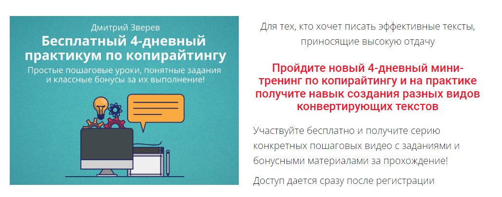 Еще один пример – мини-тренинг по копирайтингу: