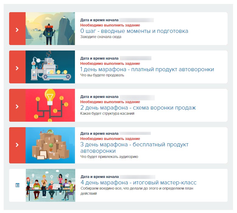 Его суть в том, чтобы сделать серию видео или иных материалов, которые открываются у человека с определенной периодичностью: в них контент и определенные задания, которые вы даете участникам.