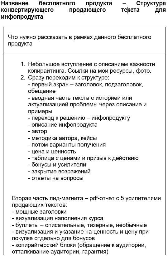 По такой же структуре вы можете планировать не только лид-магниты в формате pdf-отчетов, но и любые другие – видео, аудио, инфографику и так далее.
