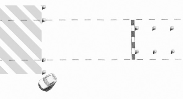 We successfully went around the shaded area by depressing throttle pedal and working with the steering wheel only. After bypassing the danger zone, we braked to the stop.