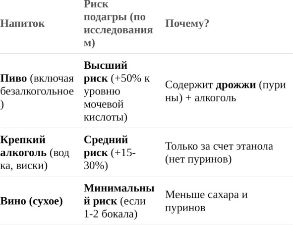 – Исследование (Choi & Curhan, 2008): У людей, пьющих> 1 сладкий напиток в день, риск подагры на 45% выше.
