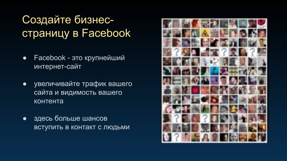 если у вас нет странички в Facebook, то вас просто не найдут.