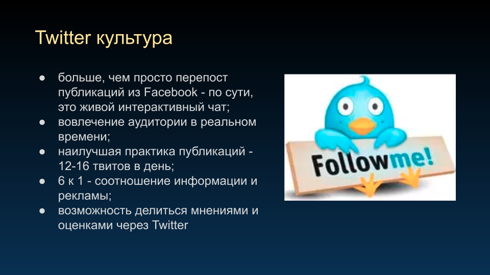Думаю, это даже немного не дотягивает до культуры Twitter: если люди любят поговорить, то они хотят поговорить, хотят быть в окружении людей, а не продавать что-то всё время.
