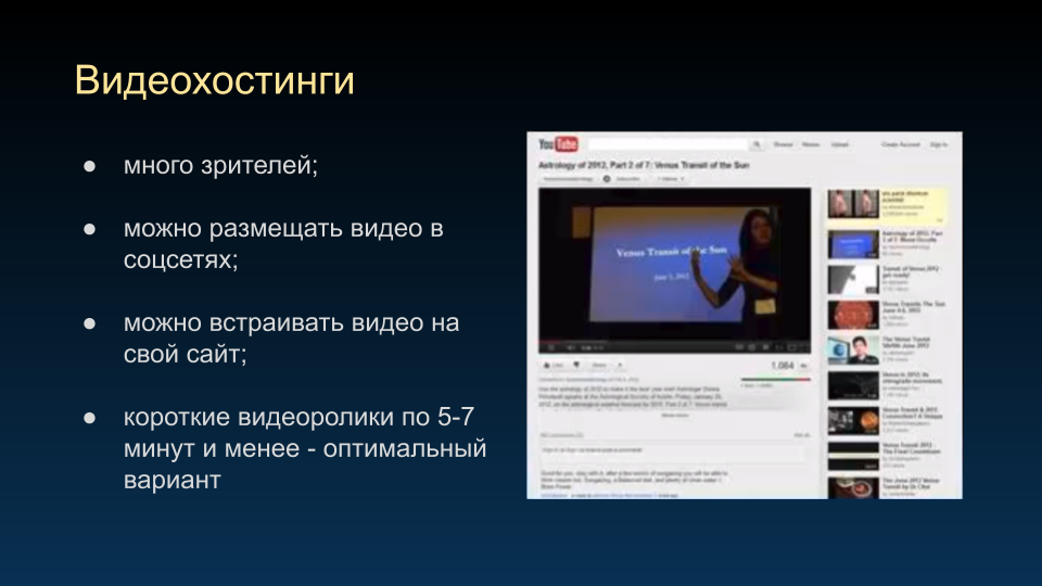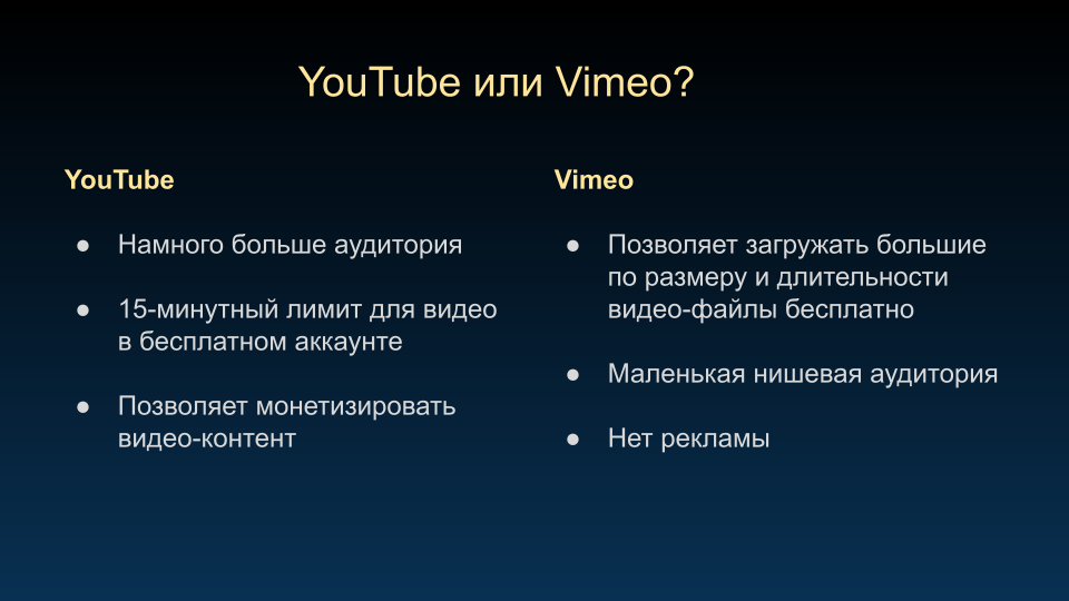 В данный момент есть два главных сайта, где можно размещать видео – это YouTube и Vimeo.