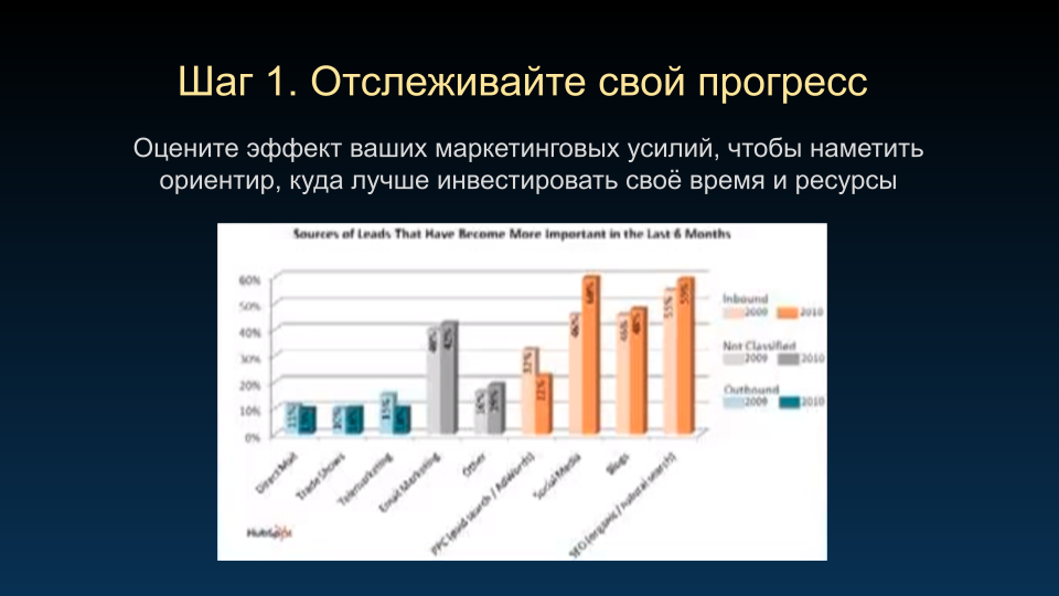 Можно смотреть показатели за короткий период. Или потратить много времени на изучение задач, в которые лучше всего инвестировать свои ресурсы в следующие 6 месяцев. Вы начнёте больше говорить о преобразовании своей аудитории в клиентов, и именно этот вопрос окажется в центре внимания, – как люди становятся клиентами. Вы получили новый приток клиентов, потому что предприняли какой-то особенный шаг? Или можно поставить перед собой любую другую цель, которая имеет смысл для вашего маркетинга и бизнеса.