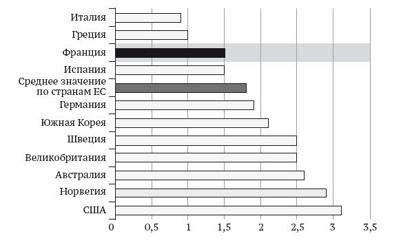 Внебюджетное финансирование (инвестиции в будущее), или ресурсы научно-исследовательских организаций, не всегда учитывается на счетах университетов. Такой вид финансирования может также привести к неравенству, связанному с территориальными диспропорциями в распределении инвестиций. В то время как международные рейтинги создают ощущение «понижения класса» французского университета и сопоставление соответствующих расходов студента университета и учащегося высшей школы вызывает опасения по поводу раскола высшего образования, финансирование высшего образования и научных исследований было определено как высший политический приоритет. Это решение приносит свои плоды, поскольку в 2015 г. государственные расходы на высшее образование во Франции составляли лишь незначительную часть бюджета по сравнению с несколькими странами ОЭСР, как показано на рис. 4.