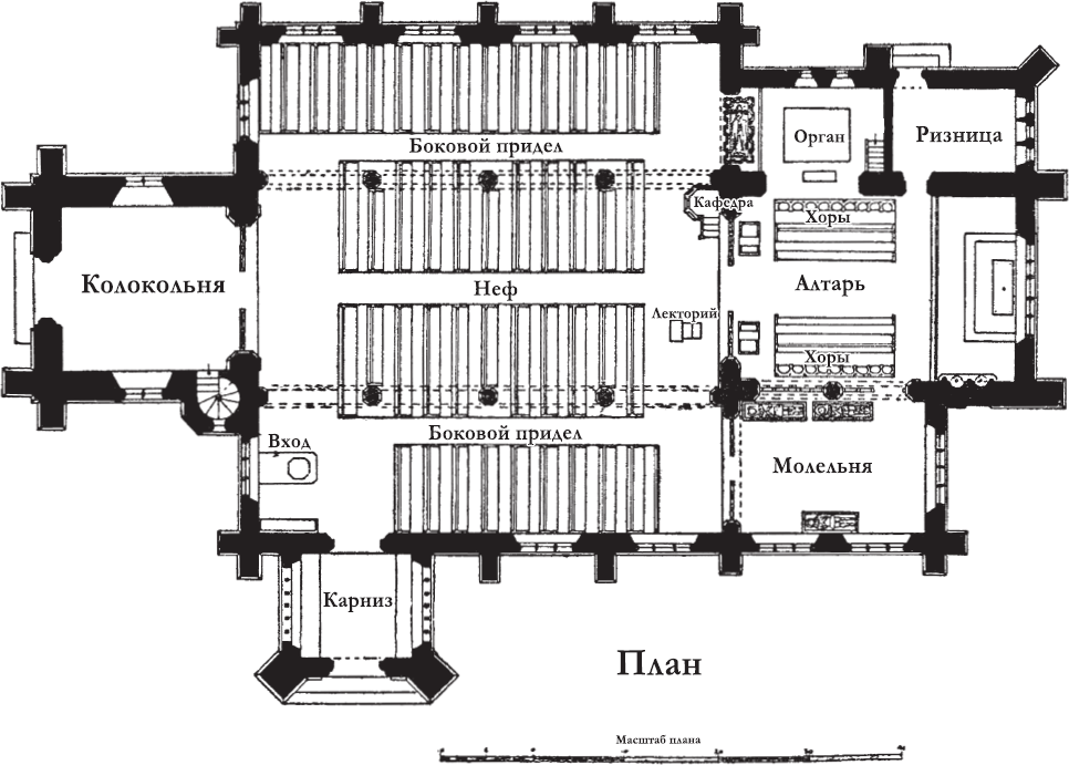 Уимзи поднялся с колен и огляделся. Охваченный благоговейным трепетом, он вдруг ощутил себя маленьким и незначительным в этом величественном помещении, заполненном людьми, пришедшими на службу, несмотря на метель и стужу. Внимание всякого, кто переступал порог этого святилища, сразу привлекали широкий неф, утопающие в полумраке боковые приделы, высокий купол, который совершенно не портили проглядывавшие из-под лепнины тонкие ребра свода, чудесный уединенный алтарь со стрельчатой аркой и пятью узкими окнами, выходящими на восток. Исходящее от всего этого великолепия мягкое свечение не оставило равнодушным и его светлость. Взгляд Уимзи скользнул по нефу и перекочевал на изящные колонны, верхушки которых расходились в стороны, подобно струям фонтана, и плавно перетекали в широкие легкие арки, поддерживавшие верхний ряд окон, освещавших хоры. Его светлость замер в восторге и восхищении. Там, в высоте, тускло мерцая в полумраке позолоченными локонами и крыльями, парили ангелы, херувимы и серафимы, устремляя взгляды к небесам и словно пытаясь взмыть еще выше.