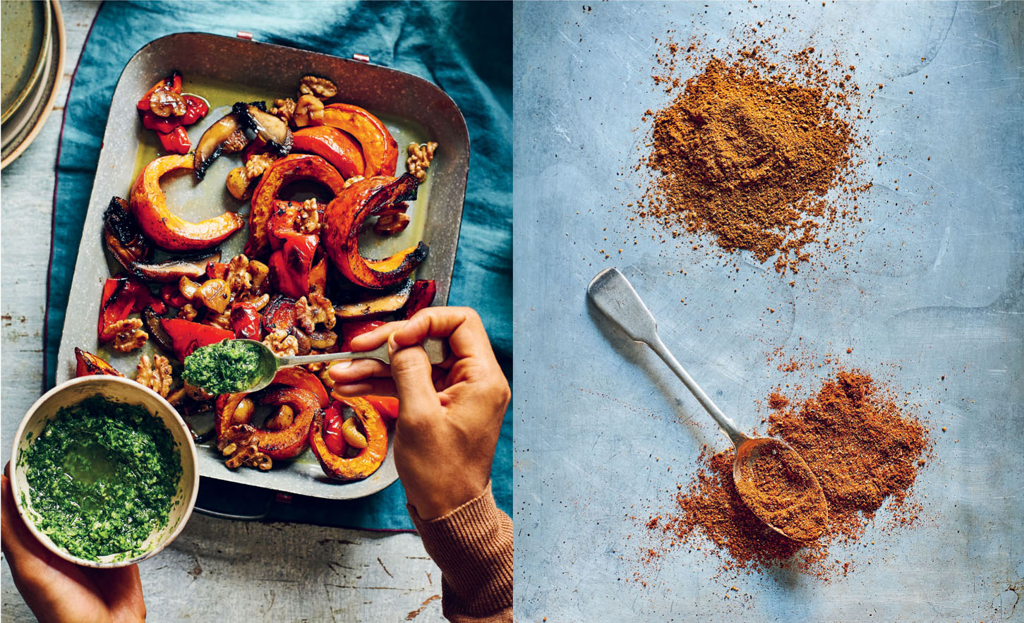 + Spices Exotic spices, such as turmeric and cloves, have become a popular topic among those trying to lead a healthier lifestyle. While I welcome greater research into the exciting compounds found within these spices, especially as they may have a role in treatment of inflammatory disorders such as osteoarthritis, psoriasis and rheumatoid arthritis,113, 114, 115 they are by no means the only ones. As a general rule of thumb, a wide range of spices contain dense concentrations of phytochemicals and micronutrients, which provide a variety of antioxidants that have the potential to reduce inflammation.116, 117 Rather than concentrating your diet around specific spices that you may not even enjoy or have access to, a simple strategy is to use those that you appreciate the flavour of. You’ll notice all of my dishes use plenty of spices and herbs and there is a clinical as well as culinary reason behind this. I’ve purposely included a section dedicated to making fresh pastes and spice blends from scratch (here) and I hope they will encourage you to enjoy the process of using these amazing ingredients, ranging from mint, basil and marjoram to sumac, cinnamon and cayenne.