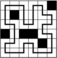 ПРАВИЛАНарисуйте одну петлю, состоящую только из горизонтальных и вертикальных линий. Петля должна проходить через каждую белую клетку всего один раз и не должна проходить через черные клетки. Требование «не проходить через одну клетку дважды» означает, что петля не может пересекать саму себя.
