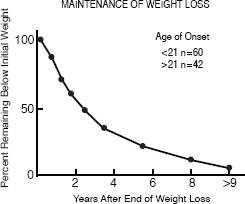 Whether this constitutes a true lasting change in behavior is doubtful. After all, Kirstie Alley and Oprah, celebrities who live in the public eye, have gained their weight back several times (until their newest miracle diet began, countless new diet books were sold, new gurus were anointed, millions of dollars were made, and the cycle repeated itself). There have been numerous reports of contestants on The Biggest Loser regaining much of their weight after the show ended. Most notably, Eric Chopin, the Season 3 winner, appeared on Oprah to tell his sorry tale of gaining at least half the weight back after his victory. He wrote in one blog post, “I’m still not back on track totally. I don’t know what it is.” Significant weight regain has been seen in up to one third of patients who have had surgery for weight loss (see chapter 19), because the reason for the obesity is still there. Unless it’s dealt with directly, regaining will be the norm, not the exception.