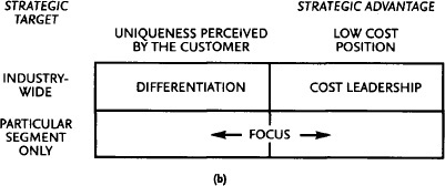 Fig. 27 Competitive strategy. (a) Forces driving competition in a market. (b) Three generic strategies. Source: Michael Porter.