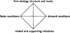 A basic starting point is a country’s factor endowments, such as plentiful (i.e. cheap) labour or skilled labour, raw materials and capital stock, together with its underlying scientific and technological infrastructure. With regard to demand conditions, it is not so much the size of the home market (although it is accepted that a large home base may be necessary to underpin economies of scale in lowering supply costs and prices) as its nature that matters. Porter emphasizes the importance of the presence of sophisticated and demanding buyers in stimulating the innovation and introduction of new products capable of being ‘transferred’ into global markets. The category of ‘related and supporting industries’ provides an important bedrock for competitive success through a network of suppliers and commercial infrastructure (see CLUSTERS). The final quadrant, ‘firm strategy, structure and rivalry’, Porter suggests, may be the most important of all, especially the element of fierce local competition. While international rivalries tend to be ‘analytical and distant’, local rivalries become intensively personal but nonetheless beneficial in providing a ‘springboard’ for international success. All these factors, it is suggested, are interrelated, creating a ‘virtuous circle’ of resource generation and application, and sensitivity in meeting customer demands.