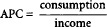 average propensity to consume (APC) the fraction of a given level of NATIONAL INCOME that is spent on consumption: