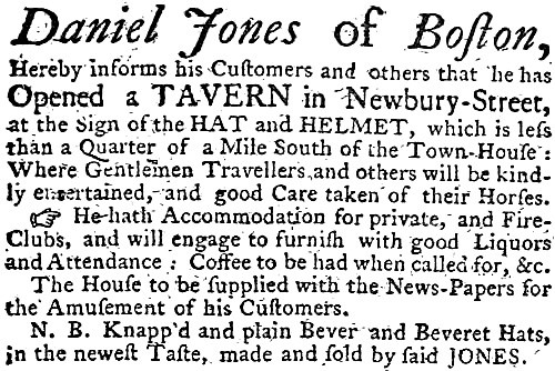 Hat and Helmet, by Daniel Jones; less than a quarter of a mile south of the Town-House.