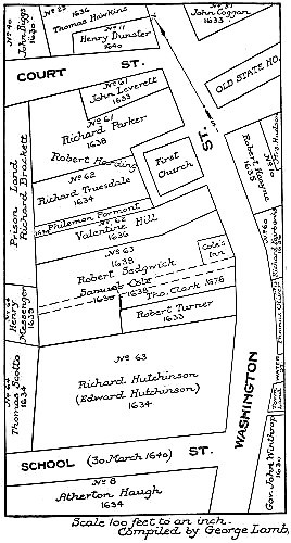 The question of Cole’s residence was easily settled by Mr. McGlenen, when he read from deeds showing that in 1645 Valentine Hill sold to Samuel Cole a lot of land near the town dock. Samuel Cole died in 1666, and in his will left his house and lot to his daughter Elizabeth and son John. This property is on the corner of Change Avenue and Faneuil Hall Square, and is now occupied by W. W. Rawson as a seed store.