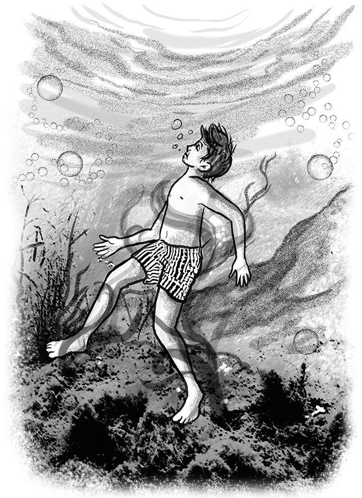 Джонни плыл и плыл и не появлялся на поверхности. Вокруг же ничего не менялось, как при замедленной съёмке. Прошло достаточно много времени, кто-то досчитал уже до ста. Может, переплыл парнишка и вышел на другом берегу, но его не видно и не слышно!