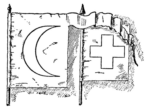 When Sir Hugh's kinsman, Sir John de Collingham, came back from the Holy Land, he brought with him a flag bearing the sign of a crescent, as shown in the illustration. It was noticed that De Fortibus spent much time in examining this crescent and comparing it with the cross borne by the Crusaders on their own banners. One day, in the presence of a goodly company, he made the following striking announcement:—