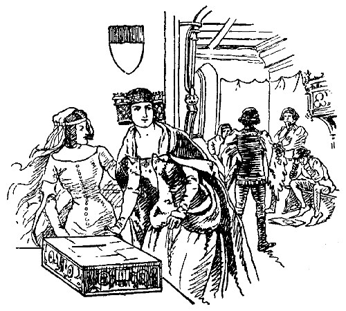 Sir Hugh's young kinswoman and ward, Lady Isabel de Fitzarnulph, was known far and wide as "Isabel the Fair." Amongst her treasures was a casket, the top of which was perfectly square in shape. It was inlaid with pieces of wood, and a strip of gold ten inches long by a quarter of an inch wide.
