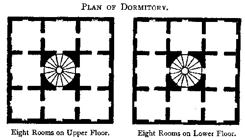 "You will put them," he said, "in the square dormitory that has two floors with eight rooms on each floor. There must be eleven persons sleeping on each side of the building, and twice as many on the upper floor as on the lower floor. Of course every room must be occupied, and you know my rule that not more than three persons may occupy the same room."