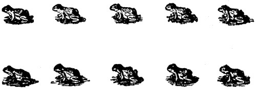 While we were vainly attempting to solve this puzzle, the Professor arranged on the table ten of the frogs in two rows, as they will be found in the illustration.