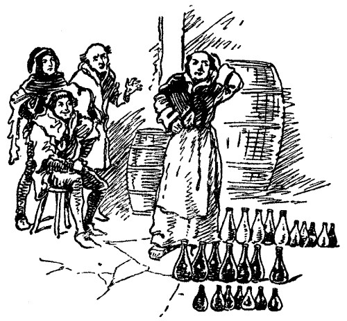 "So be it. There be three varlets waiting at the gate. Let the two dozen bottles be given unto them, both full and empty; and see that the dole be fairly made, so that no man receive more wine than another, nor any difference in bottles."