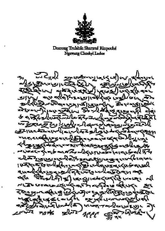 Невежественный Вакиндра Дхармамати, монах Будды Шакьямуни, носящий имя Дзаронг Трулшиг Шатрул, написал это в Таши Палбар Линге, что в Ла-Соннери, Дордонь, Франция, в благоприятный двадцать пятый день одиннадцатого лунного месяца, в 1999 году.