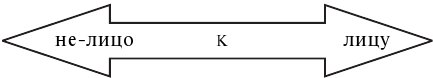 Мой опыт, независимо от его вида, двусторонен: есть – не есть. То, что я называю «мое внимание», приобретает форму этой двусторонней стрелки, указывая на Объект, который есть, и одновременно на Субъект, которого нет. Например, общепринятая схема лицом-к-лицу заменяется на