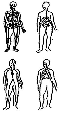 Итак, каковы же основные части моего тела? В качестве грубого первого наброска, удобным разделением будет скелет, система мышц, дыхательная система, система кровообращения, система пищеварения, выделительная система, репродуктивная система и нервная система. Таким образом, целостного человека можно изобразить в виде компании людей с узкой специализацией – один дышит, другой ходит, третий переваривает пищу, и т. п. В свою очередь, каждую систему можно рассматривать как скопление органов. А орган, в свою очередь, можно разделить на различные виды тканей.