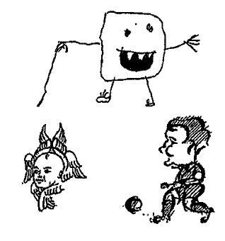 Рисунок мальчика (девяти лет), на котором человек с зубной болью – пример того, что иногда называют «тактильным» излишним подчеркиванием пораженной части. См. Виктор Левенфельд, Природа творческой деятельности и Герберт Рид, Образование посредством искусства.