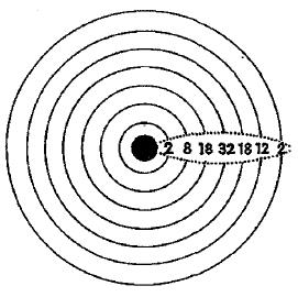 Атом урана: схематическое указание содержимого каждого из его семи оболочек.