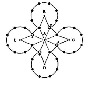 Множественное членство. Два сына из семьи А женаты, соответственно, на дочерях из семей В и С; две дочери из этой семьи вышли замуж и подобным образом вошли в семьи D и Е. Таким образом, численность семейного круга А доведена до восьми членов, каждый из которых, будь то посредством брака или происхождения, является членом еще одной семьи. И, таким образом, пять семей объединены браком. И это не простое совпадение (а также не обман), что данная схема в равной мере могла бы относиться и к молекуле четыреххлористого углерода!