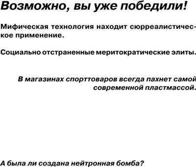 – Во-первых, лего находится в онтологическом родстве с компьютерами. Я имею в виду, что сам компьютер… скажем так, ничто. Компьютер может стать «чем-то», лишь если мы найдем ему конкретное применение. То же самое с лего. Мы хотим создать таблицу в Excel или построить из конструктора гоночный автомобиль. Вот для чего нам все это. И компьютер, и конструктор сами по себе инертны и бессмысленны. Можно подпереть ими дверь или выбросить. Дискретные модульные кирпичики лего из пластмассы под названием акрилонитрилбутадиенстирол нельзя уничтожить. Их единственная функция – быть такими, какие они есть.