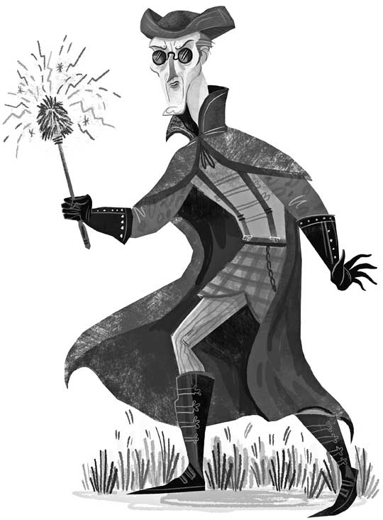 По ту сторону живой изгороди прогромыхали копыта. Раздался скрежет, лошади дико заржали, и вот уже офицер Смоукхарт несется к ним во всю прыть, размахивая руками, а полы черного плаща развеваются за ним подобно зловещему облаку. Иви с содроганием заметила, что кожа на его лице и шее сейчас не гладкая и белая как мел, а вся покрыта алыми пятнышками, похожими на капли крови. В одной руке он сжимал туалетный ершик и размахивал им так, что щетинки шевелились, выстреливая голубыми искорками.