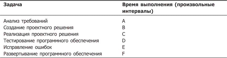 Руководствуясь таким планом, вы рискуете нарваться на кучу неприятностей. Будучи глубоко убеждены, что конечная дата сдачи проекта будет равняться сумме временных интервалов A + B + C + D + E + F, вы немало удивитесь, обнаружив, что это совершенно не так.