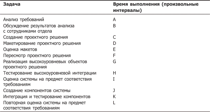Конечно, и для мозга найдется работа – в частности, ему предстоит разработать методы контроля над разрастанием рамок проекта. Давайте рассмотрим типичный план проекта. Предположим, что, исходя из заданного набора требований, вы должны разработать проектное решение с расчетом на его последующую реализацию программными средствами. Элементарный, но наивный план иллюстрирует табл. 3.3.