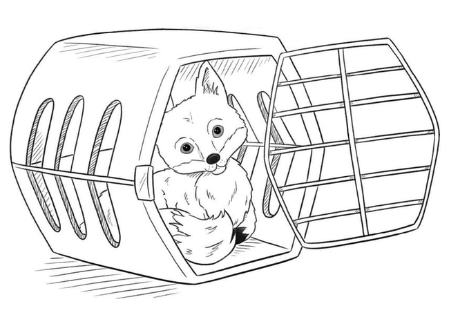 Бабушка нашла старую кошачью переноску и отправилась в сарай. Вскоре она вернулась и принесла в переноске лисёнка, а затем осторожно поставила её в тёплый уголок гостиной. Пёс по имени Бобби и кот по имени Усатик пришли посмотреть на лисёнка, но, видимо, обоим было не слишком интересно за ним наблюдать.