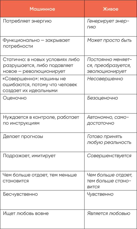 Таблица ниже помогает наглядно увидеть, насколько отличается живое от машинного.