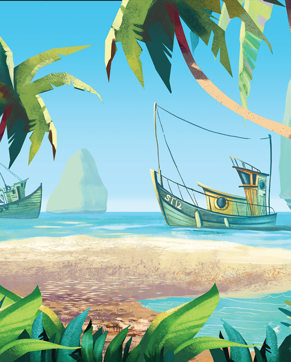 In the midst of the deep blue sea there was an island, where different animals lived. Juicy fruit and vegetables grew here, and wonderful flowers blossomed. Day and night snow-white steamships sailed up to look at the beautiful island and admire its beauty.