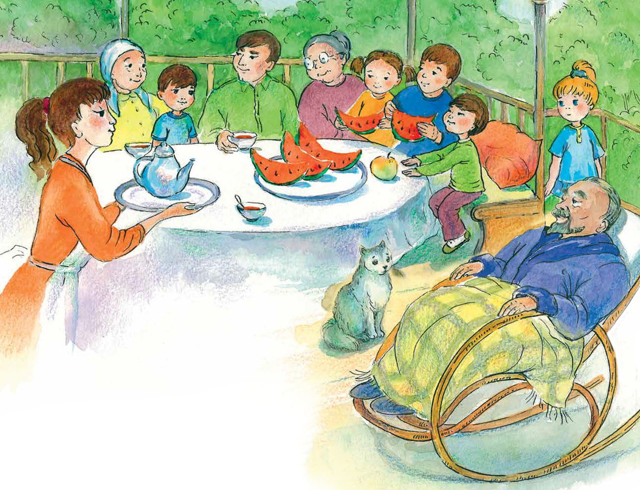 Striped watermelons were the size of a car! A team of men rolled a watermelon up to the helipad, put it into a huge net and then fastened it to the helicopter. Daniyal could see an air traffic controller with flags who was carefully watching the flights and guiding the helicopters to the right place.