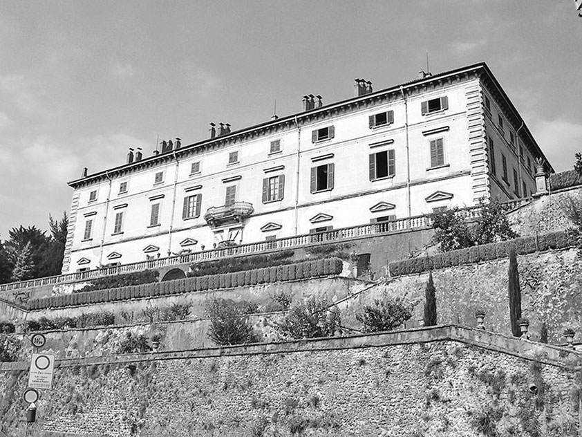 Со стороны двора к заднему фасаду пристроен портик со сдвоенными колоннами, а за ним атриум с большой лестницей в форме U. Через четыре пролета лестница выводит в атриум второго этажа, где две колонны обрамляют массивную дверь в галерею над портиком нижнего этажа. Дальше стоит капелла с небольшой сакристией. Комнаты на втором этаже с окнами на реку более или менее повторяют залы первого этажа, там находится кабинет герцога Лоди, нашего Франческо Мельци д’Эрил[3], одного из первых итальянских политиков конца XVIII – начала XIX века, который стал убежденным сторонником объединения Италии и образования единого государства. В центральной части дома, в комнате, носящей его имя, открыт выход на балкон, с которого в ясные дни можно разглядеть слева Верхний город Бергамо, а справа первую гряду Тоскано-Эмильянских Апеннин. Напротив, за каналом Навильо и рекой Адда стоит город Каноника, а на горизонте виднеется Понтироло с его характерной колокольней.