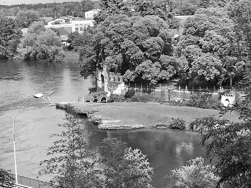 И водозабор оросительного канала Ваилата, который на противоположном берегу тянется вдоль Адды, хорошо различим на рисунке. В конце жаркой недели местные жители приходят на этот склон загорать и нырять с обрыва в реку, которая чуть выше по течению принимает в себя воды Брембо.