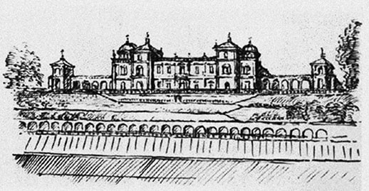 Рисунок Леонардо для виллы Мельци (Атлантический кодекс, аверс листа 414, эскизы Виллы Мельци в Ваприо, около 1513)