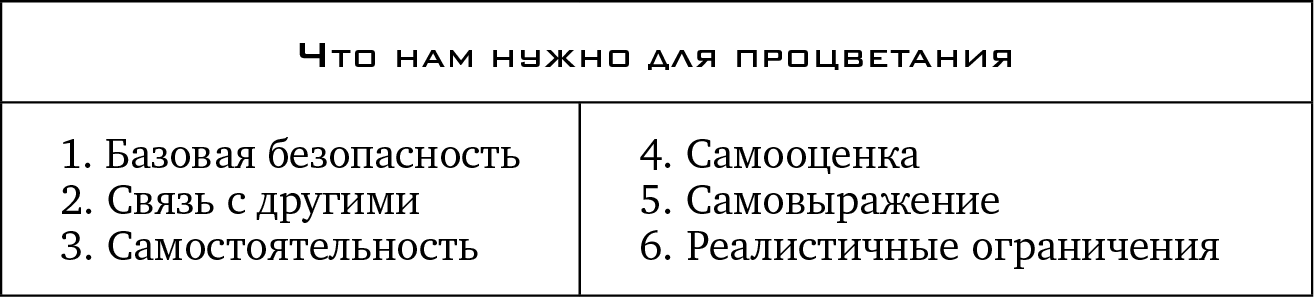 Для того чтобы стать приспособленным к жизни взрослым, не обязательно иметь идеальное детство. Оно лишь должно быть, как говорил Д. У. Винникотт, «достаточно хорошим». У ребенка есть основные потребности: базовая безопасность, связь с другими, самостоятельность, самооценка, самовыражение и реалистичные ограничения. Если они удовлетворены, то обычно ребенок психологически преуспевает. Проблемы появляются, когда в удовлетворении этих нужд возникают серьезные недостатки – то, что мы и называем ловушками.