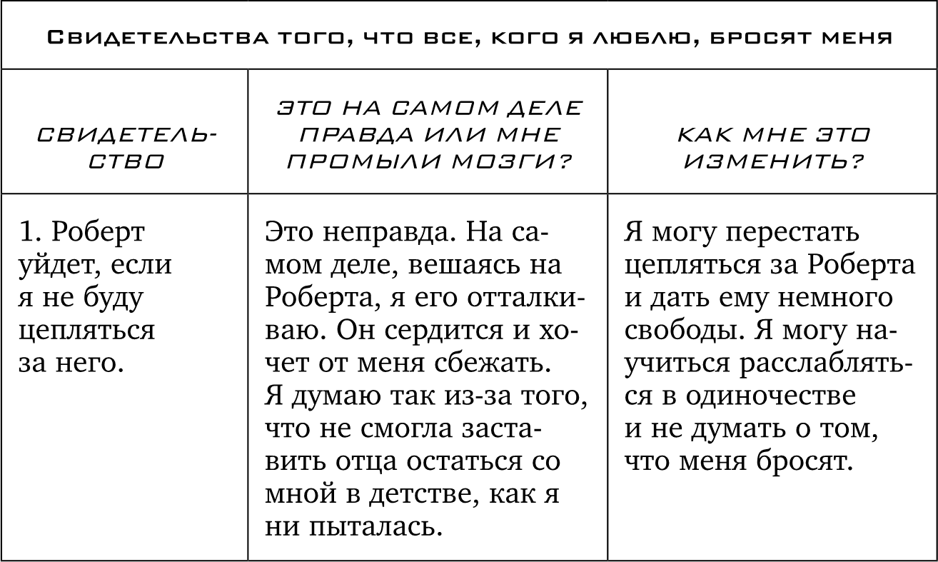Решение 2: Тщательно поищите в своей жизни свидетельства того, что ваша ловушка – неправда. Найдите все возможные способы измениться. Есть ли у вас смягчающие обстоятельства, которые лишают ловушку силы? Может быть, с вами жестоко обращались? Вы избегали попыток преуспеть из страха отверженности или провала? Вы выбирали друзей, любовников, начальников и т. д., которые закрепляли вашу ловушку? Будьте настойчивы и найдите улики против своей ловушки.
