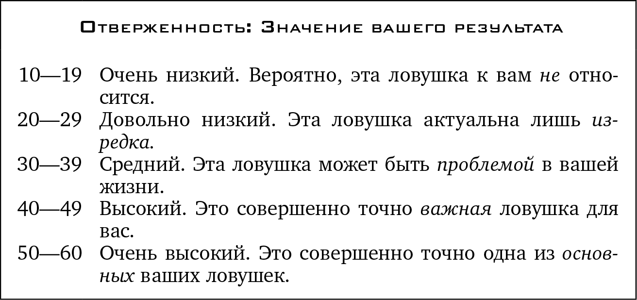 Если вы оценили какой-либо пункт этого опросника на 5 или 6, ловушка может быть вам свойственна, даже если общий счет получился низким.