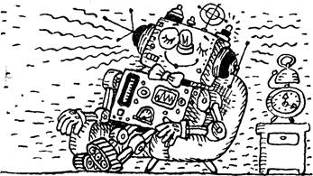 Будучи машиной, Катерино, естественно, не нуждался в сне. По ночам, когда все отдыхали, он, чтобы не скучать, снова и снова отутюживал складку на брюках профессора Исидоро, потом заканчивал вязание синьоры Луизы, мастерил игрушки детям, красил и перекрашивал стены в кухне, покрывал лаком стулья. Когда же он не находил себе совсем никакого, даже самого простого дела, то отправлялся в гостиную, усаживался в кресло и принимался решать кроссворды. Синьор Исидоро выписывал специальный журнал для роботов, в котором кроссворды были составлены из самых трудных слов, какие только можно отыскать в словаре. Так что роботам приходилось немало попыхтеть над ними.