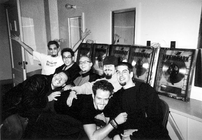Группа радуется приятному сюрпризу – своим первым золотым записям. Memorial Auditorium, Сакраменто, штат Калифорния, 22 декабря 2000 года.